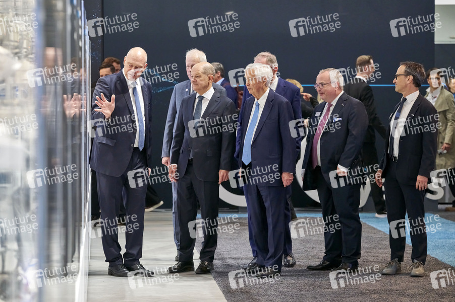 Deutsche Messe AG, Hannover Messe Industrie, Weltleitmesse der Industrie, Industriemesse, Industrieschau, Automatisierung, IT-Sicherheit, KI, Technologie, Wirtschaft, Ausstellung, Fair, Messe, Eröffnung, Opening, Leitmesse, Synergie und Kooperation, Wasserstoff & Brennstoffzellen, CO2-neutrale Produktion, Energizing a Sustainable Industry, Künstliche Intelligenz, Partnerland Kanada, Politiker, Bundeskanzler