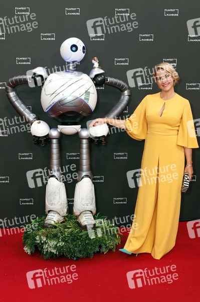 Rozzum 7134 und Judith Rakers bei der Premiere des Animationsfilms 'Der wilde Roboter / The Wild Robot' auf dem 32. Filmfest Hamburg 2024 im Cinemaxx Dammtor. Hamburg, 27.09.2024