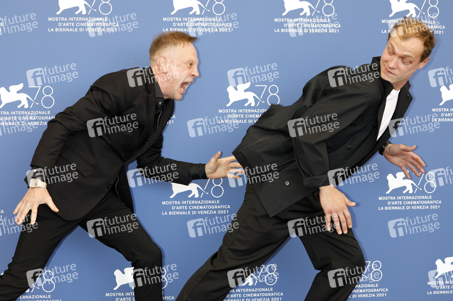 Timofey Tribuntsev und Jurij Borisov beim Photocall zum Kinofilm 'Kapitan Volkonogov bezhal / Captain Volkonogov Escaped' auf der Biennale di Venezia 2021 / 78. Internationale Filmfestspiele von Venedig im Palazzo del Casino. Venedig, 08.09.2021
