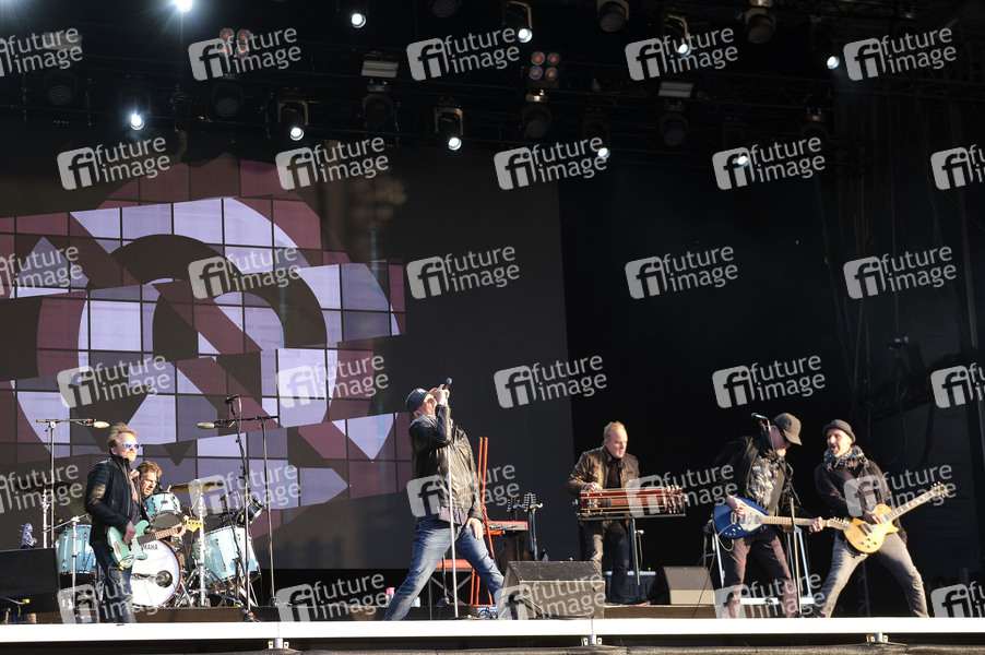 Christian Decker, Rainer Schumann, Kai Wingenfelder, Martin Huch, Gero Drnek und Thorsten Wingenfelder von Fury in the Slaughterhouse live beim Autokultur-Konzert auf dem Schützenplatz. Die Besucher verfolgen unter Berücksichtigung klarer Hygiene-Vorschriften während der Corona-Krise den Auftritt aus dem Auto. Hannover, 14.05.2020