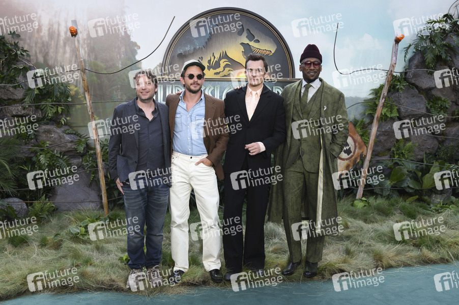 Gareth Edwards, Jonathan Bailey, Rupert Friend und Mahershala Ali bei der Weltpremiere des Kinofilms 'Jurassic World: Rebirth / Jurassic World: Die Wiedergeburt' im Odeon Luxe Leicester Square, London, 17.06.2025