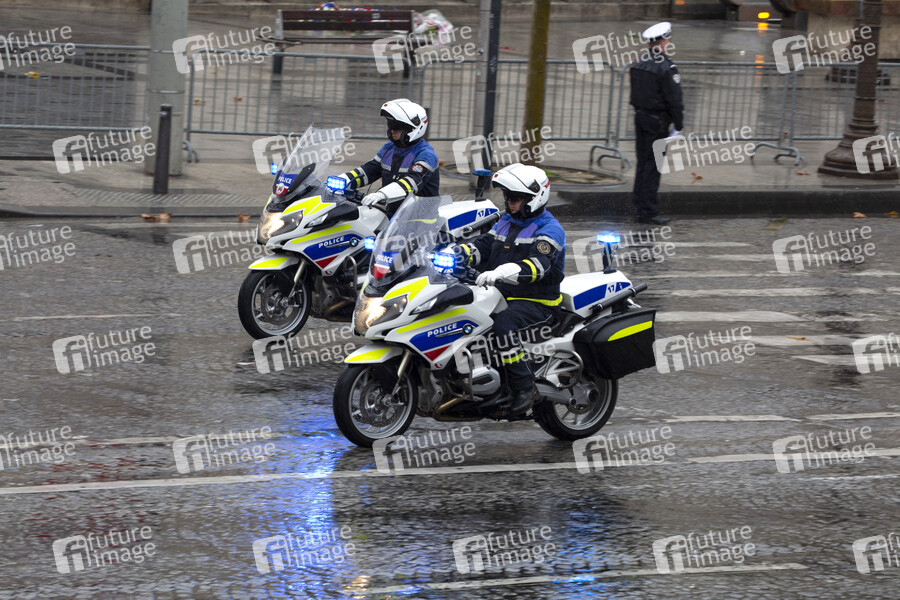 Polizei bei der 101. Jahrfeier des Waffenstillstands von 1918 am Triumphbogen. Paris, 11.11.2019