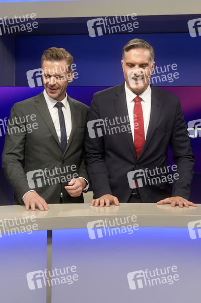 Florian Schroeder und Frederik Pleitgen in der ARD-Talkshow 'maischberger' im Studio Berlin Adlershof. Berlin, 03.06.2025