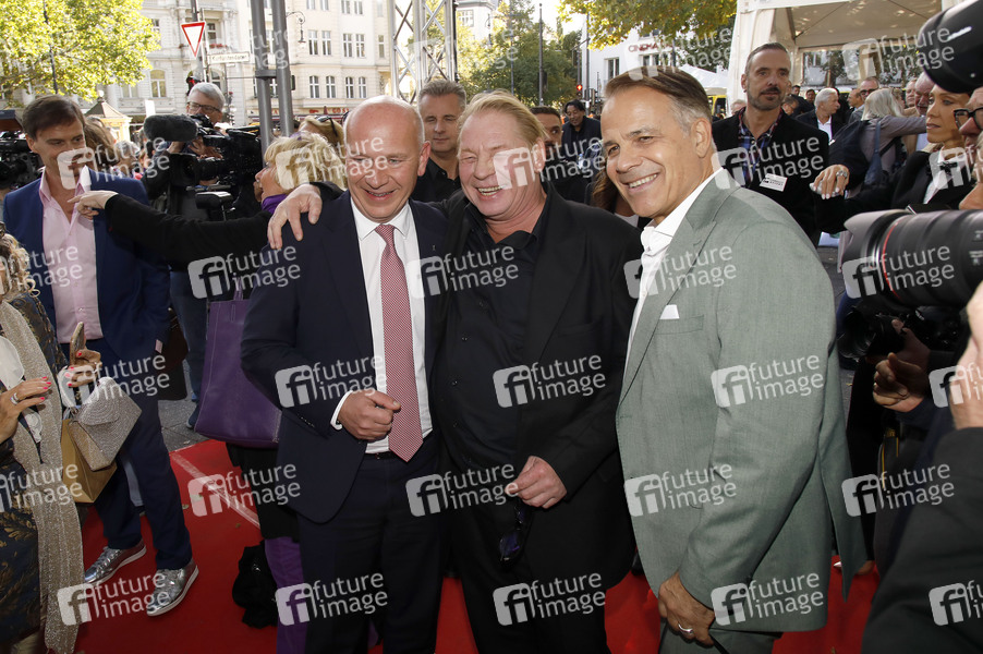 Kai Wegner, Ben Becker und Karsten Speck bei der offiziellen Einweihung des Harald-Juhnke-Platzes am Kurfürstendamm. Berlin, 29.09.2025