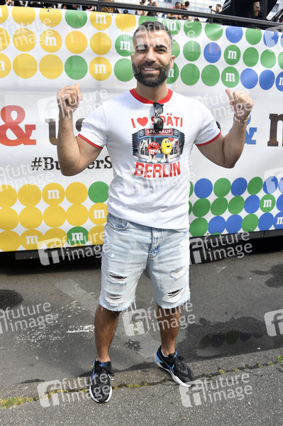 Rafi Rachek vor dem M&M's Truck bei der 44. Christopher Street Day Parade 2022 unter dem Motto 'United in Love! Gegen Hass, Krieg und Diskriminierung' vom Spittelmarkt auf gut sieben Kilometern über Potsdamer Platz und Potsdamer Straße zum Nollendorfplatz, von dort weiter zur Siegessäule und zum Brandenburger Tor. Berlin, 23.07.2022