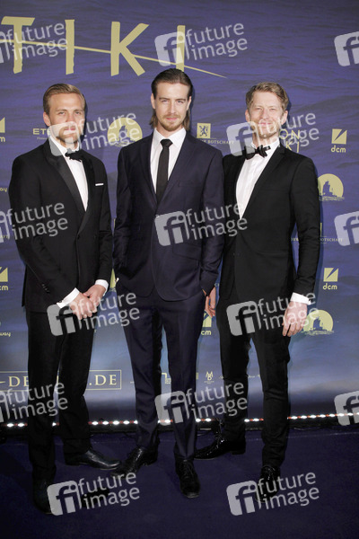 Tobias Santelmann, Pal Sverre Valheim Hagen und Odd Magnus Williamson bei der Filmpremiere des Kinofilms 'Kon Tiki' im Kino International. Berlin, 06.03.2013