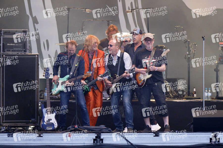 Christian Decker, Christof Stein-Schneider, Rainer Schumann, Martin Huch, Kai Wingenfelder und Gero Drnek von Fury in the Slaughterhouse live beim Strandkorb Open Air im Sparkassenpark Mönchengladbach. Mönchengladbach, 30.07.2021