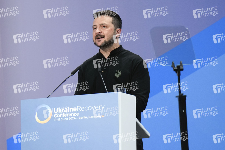 Wolodymyr Selenskyj bei der Eröffnung der Ukraine Recovery Conference 2024 unter dem Motto 'United in Defense. United in Recovery. Stronger together.', auf dem Messegelände. Berlin, 11.06.2024