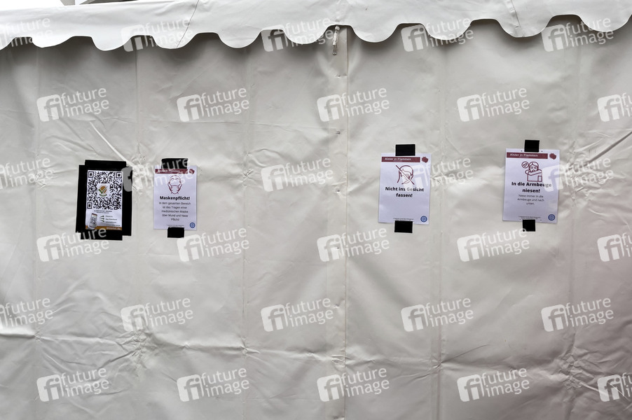 Hygiene-Konzept bei der Protest-Veranstaltung Alarmstufe Rot - Alster in Flammen an den Messehallen am Heinrich-Hertz-Funkturm. Die Veranstalter wollen ein Zeichen setzen, dass mit vernünftigen Sicherheits- & Hygienemaßnahmen ( Testung, Anmeldung, App ) Öffnungen wie Gastronomie, Theater, Kinos, Fitnessstudios, entsprechende kulturelle Veranstaltungen etc. machbar sind. Hamburg, 20.03.2021
