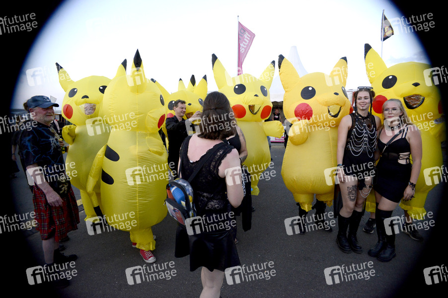 Prominenz, Celebrity, Celebrities, Musik, Konzert, Auftritt, Bühne, Stage, live, Kultur, Unterhaltung, Entertainment, Mera Luna, Meraluna, Musikfestival, Open Air, Konzertbesucher, Publikum, Fan, Fans, Gothic Szene, Steampunk, Kostüm, Cosplayer, schwarze Szene, Pokémon, Pikachu