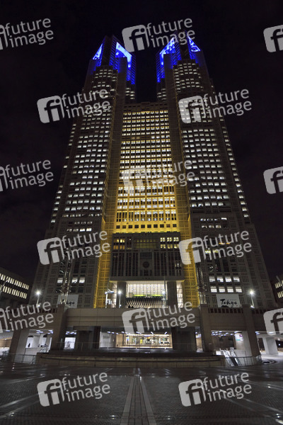 Regierungsgebäude der Präfektur Tokio, Präfekturregierungsgebäude, Illumination, Politik, Solidarität, Krieg, Ukraine, Russland, Ukraine-Russland-Krise, Solidaritätsaktion, Solidarität, Ukrainekonflikt, Solidaritätsbekundung, Krise