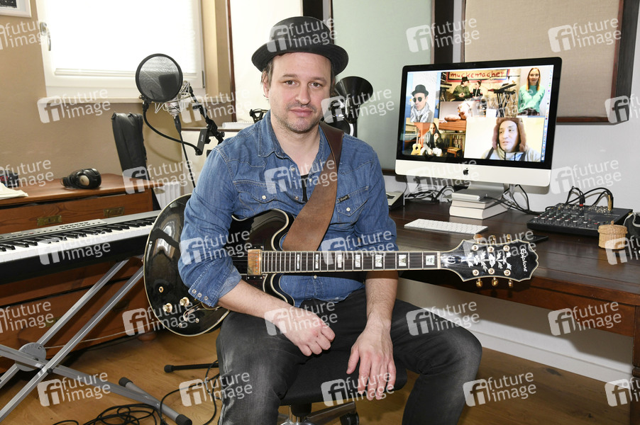 Phil Höcketstaller von Hundling beim aktuellen Tonstudio-Bahnhofsmission Spezial mit dem aktuellen Video 'Wofür?' in der Lockdown Version in seinem Tonstudio bei München. 17.02.2021