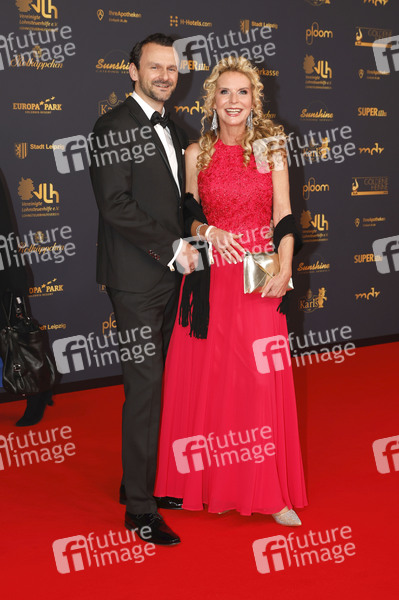 Victoria Herrmann mit Ehemann David Böthig bei der 30. Verleihung der Goldenen Henne 2024 im Studio 3 der Media City des MDR. Leipzig, 15.11.2024