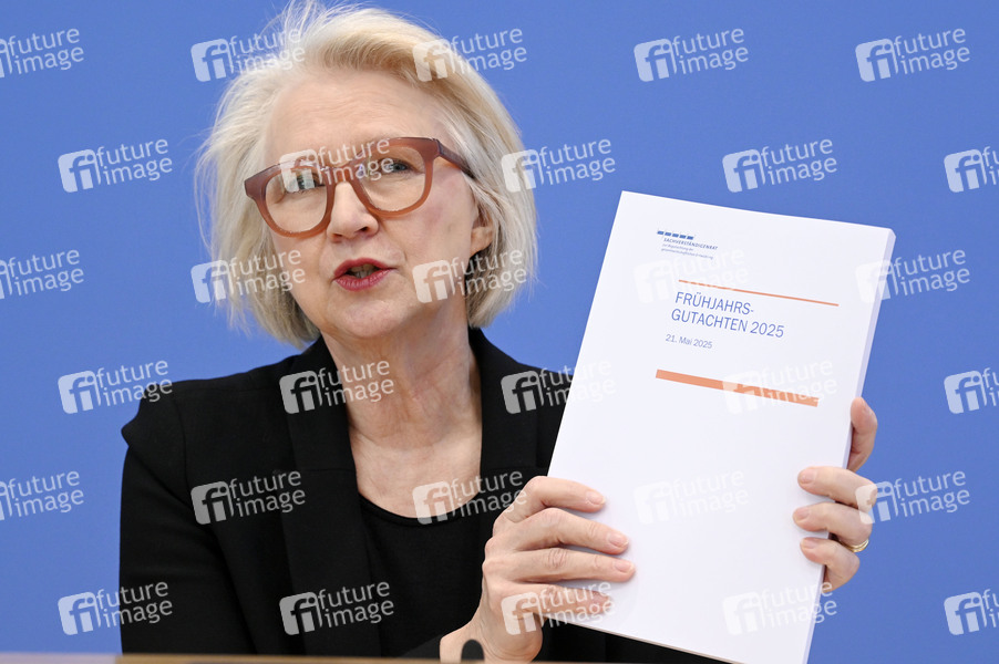 Monika Schnitzer bei der Bundespressekonferenz 'Vorstellung des Frühjahrsgutachten 2025 - Sachverständigenrat zur Begutachtung der gesamtwirtschaftlichen Entwicklung' im Haus der Bundespressekonferenz. Berlin, 21.05.2025