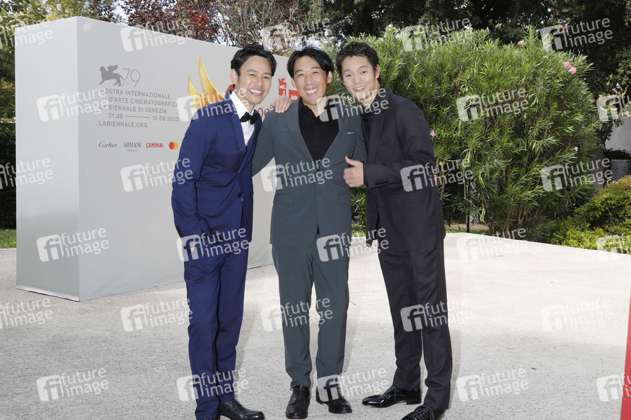 Satoshi Tsumabuki, Kei Ishikawa und Masataka Kubota bei der Premiere des Kinofilms 'Aru otoko / A Man' auf der Biennale di Venezia 2022 / 79. Internationale Filmfestspiele von Venedig. Venedig, 01.09.2022