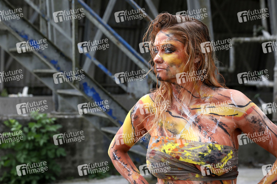 Bodyart, Künstler, Körperkunst, Bodypainting, Body Painting, Körpermalerei, Kunst, Art, Fineart, Farbe, Fotografie, Fotoshooting, Fotoart, Fotokunst, Akt, Frau, Model, Fotomodell, Fotomodel, Aktmodel, Aktmodell, Nacktmodell, Nacktmodel, nackt, arbig, bunt, abstrakte Kunst, moderne Kunst, Artperformance, Kunstperformance, Splash, Splashart, Farbkleckse, Farbspritzer, Industrie, Industriegebiet, Kieswerk, Ruine, Lost Place, model, nudemodel, nude, nudeart, nude art, naked art, contempory art, naked, colour, color, industry, industrial area, gravel works, ruins, rusty