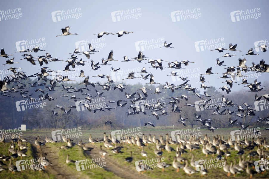 Kraniche und Wildgänse