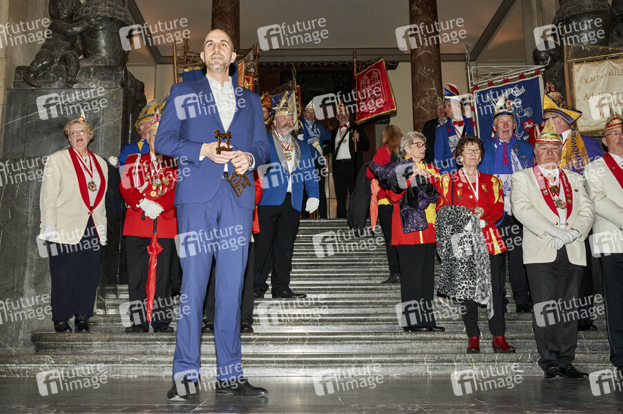 Belit Onay bei der Stürmung des Neuen Rathauses durch die Hannoveraner Karnevalsvereine und der Proklamation der Prinzenpaare 2021 mit Übergabe des Stadtschlüssels. Hannover, 13.11.2021