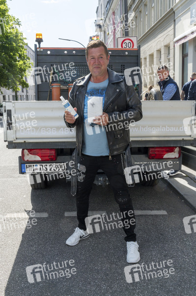 Rene Zierl bei der Verteilung von 1.000 Stück FFP2 Schutzmasken und 1.000 Fläschchen Desinfektionsmittel in Kooperation mit Riedel Schmiermittel und HDS GaLaBau an Hilfsbedürftige auf dem Kiez St. Pauli. Hamburg, 30.05.2020