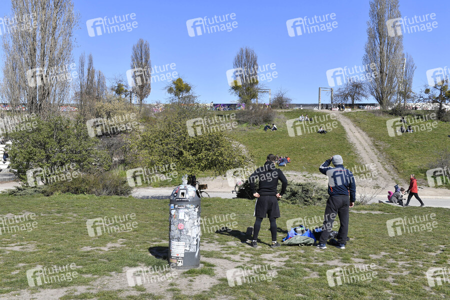 Der Mauerpark während der Ausgangsbeschränkungen wegen der Coronakrise am Samstagnachmittag. Berlin, 04.04.2020