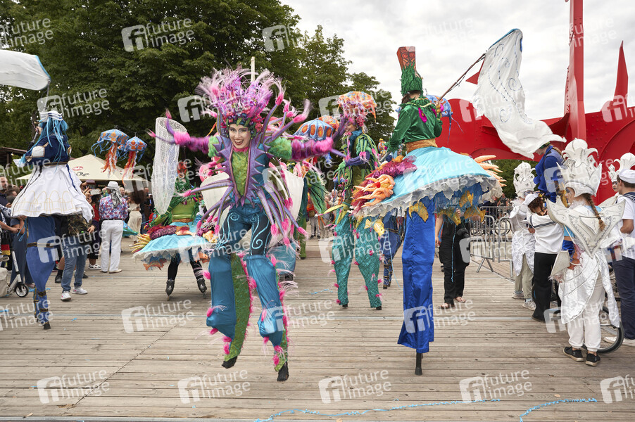 Tänzerinnen und Tänzer bei der Eröffnung des 35. Maschseefestes 2022 in Hannover am Nordufer des Maschsees. Hannover, 27.07.2022