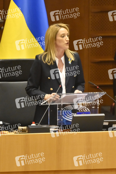 Rede, Politik, Europaparlament, EU-Parlament, EP, Parlament der Europäischen Union, Parlamentum Europaeum, MdEP, Mitglied des Europäischen Parlaments, Krieg, Angriffskrieg, Einmarsch, Europapolitik, internationale Krise, internationale Politik, internationales Recht, Konflikt, Krieg, Kriegsbeginn, Kriegsverbrechen, Krise, Militäroffensive, Militärschlag, Sanktionen, Solidarität, Solidaritätsbekundung, Ukraine, Ukrainekonflikt, Ukraine-Konflikt, Ukrainekrise, Ukraine-Russland-Krise, Politikerin, Malta, Partit Nazzjonalista, EU-Parlamentspräsidentin, Präsidentin des EU-Parlaments