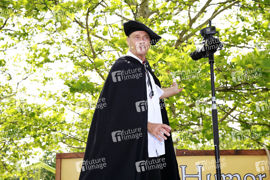 Beppo Küster mit seiner Protest-Show 'Galgen-Humor' vor dem Pflegestützpunkt Marzahn-Hellersdorf. Berlin, 15.06.2019