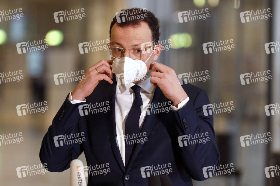 Jens Spahn bei einem Pressestatement im Rahmen der 204. Sitzung des Deutschen Bundestages im Reichstagsgebäude. Berlin, 14.01.2021