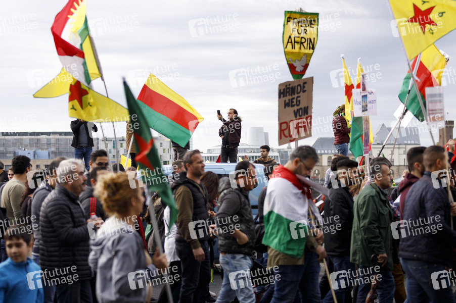 Teilnehmer beim Demonstrationszug 'Stoppt die Invasion kurdischer Gebiete' in der Deutzer Werft. Köln, 12.10.2019