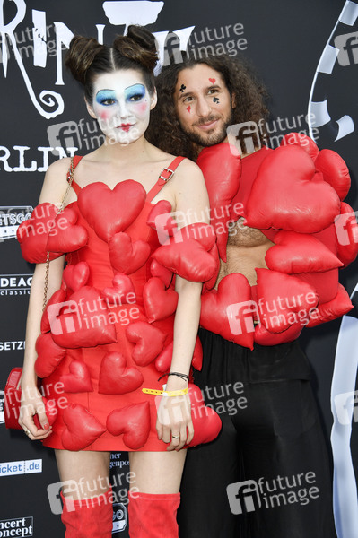 Klaudia Giez und Adriano Salvaggio bei der Premiere der internationalen Ausstellung 'Tim Burton's Labyrinth' in der Radsetzerei auf dem RAW-Gelände. Berlin, 18.07.2024
