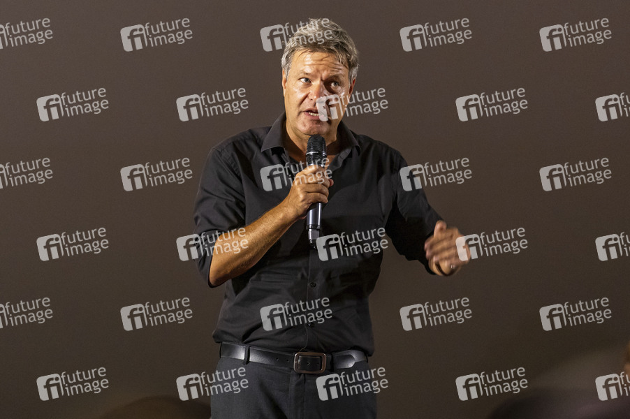 Robert Habeck bei einer Wahlkampfveranstaltung von Bündnis 90/Die Grünen zur Landtagswahl in Sachsen im Cineplex Rundkino. Dresden, 30.08.2024