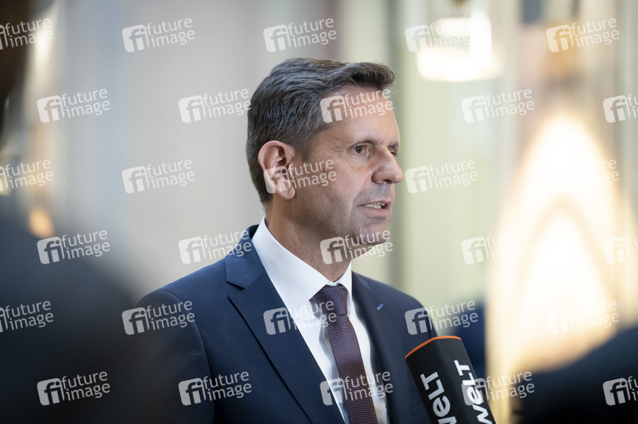 Olaf Lies beim Pressestatement am Rande der 1054. Sitzung des Bundesrates im Plenarsaal des Preußischen Herrenhauses. Berlin, 23.05.2025