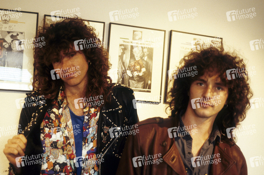 Gary Sharpe und Chris Ousey von Heartland bei einem Photoshooting in einem Hotel. London, 20.05.1991