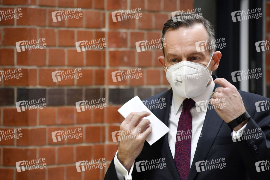 Volker Wissing beim Pressestatement der FDP zum Impfgipfel im Hans-Dietrich-Genscher-Haus. Berlin, 27.05.2021