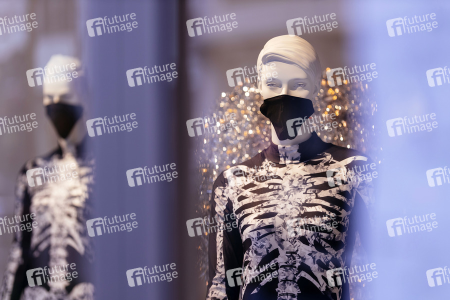 Einzelhändler auf der exklusiven Kölner Mittelstraße haben aus Protest gegen die Corona-Maßnahmen des Bundes, die sie zum Lockdown zwingen, Schaufensterpuppen zu Skeletten umgestaltet und mit Gesichtsmasken versehen. Sie fordern eine gerechtere Verteilung der Corona-Hilfspakete, eine sinnvollere Corona-Politik wie etwa eine stärkere Steuerentlastungen für den Einzelhandel oder eine Mietpreisbremse für Einzelhandelsgeschäfte. (Themenbild, Symbolbild) Köln, 11.01.2021