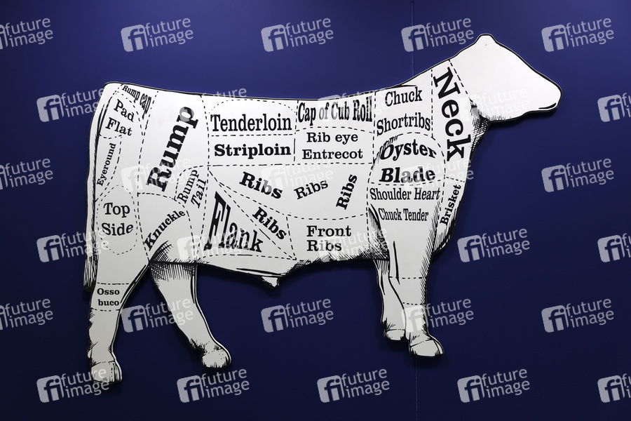 Rump, Flank, Ribs, Neck, Tenderloin, Filet, Steak, Fleischprodukte, Beef, Meat, Fleisch, Fleischbranche, Wurst, Schinken, Rinderfleisch, Rindfleisch, Delikatessen, Fleischkonsum, Fleisch essen, Anuga, Food, Ernährung, Essen, Trinken, Nahrung, Nahrungsmittel, Food-Messe, Lebensmittel-Messe, Lebensmittelmesse, FoodTech, Fachmesse, Innovationen, Nachhaltigkeit, pflanzliche Lebensmittel, Food-Trends, Laborfleisch, Flexitarismus, Tierwohl, neue Produkte, Anuga-Logo, Fahnen, Anuga-Fahnen, Symbolfoto, Symbolbild