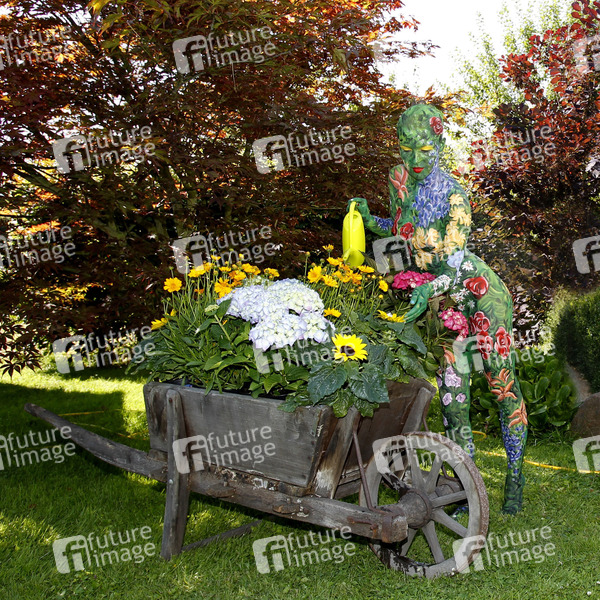 Bodypainting, Body-Painting, Erotik, Frau, Mädchen, nackt, Akt, weiblich, Körperkunst, Körperfarben, Farbe, Bemalung, Kunst, Malerei, Garten, Gartenarbeit, Natur, Blumen, Pflanzen, Gartenbau, Gartengerät, Gießkanne, Kanne, Wasser, body painting, erotic, woman, girl, nude, female, body art, colors, garden, gardening, nature, flowers, plants, water, Joerg Duesterwald