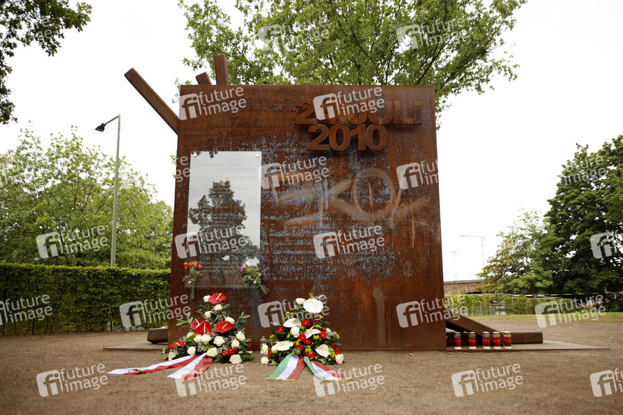 Mahnmal für die Opfer der Loveparade auf der Gedenkfeier zum 10. Jahrestag der Loveparade Katastrophe, bei der 21 Menschen starben. Duisburg, 24.07.2020