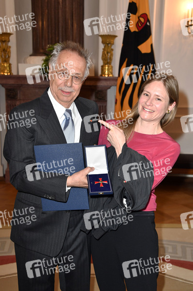 Dieter Kosslick und Julia Jentsch bei der Verleihung des Verdienstordens der Bundesrepublik Deutschland an Dieter Kosslick im Schloss Bellevue. Berlin, 10.04.2019