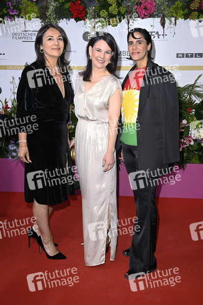 Düzen Tekkal, Annalena Baerbock und Tuna Tekkal bei der 75. Verleihung des Deutschen Filmpreises 2025 im Theater am Potsdamer Platz. Berlin, 09.05.2025