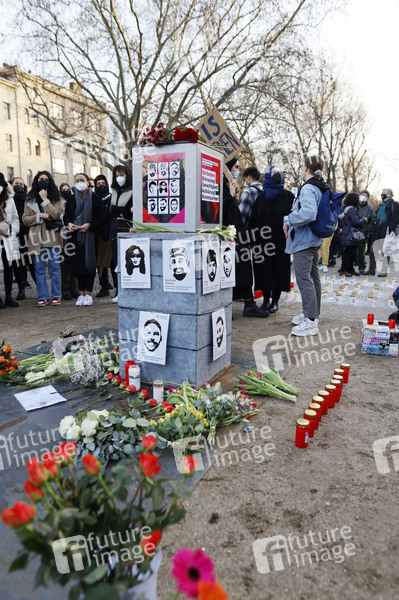 Gedenkveranstaltung zum ersten Jahrestag des rassistischen Anschlags in Hanau am Oranienplatz. Vor einem Jahr tötete ein Rechtsextremist in Hanau zehn Menschen und sich selbst. Berlin, 19.02.2021