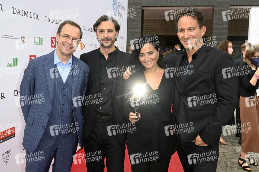 Gunnar Dedio, Lucio Mollica, Mayte Carrasco und Marcel Mettelsiefen bei der 57. Verleihung des Grimme Preises 2021 im Theater der Stadt Marl. Marl, 27.08.2021