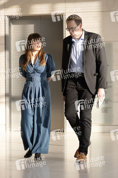 Heidi Reichinnek und Sören Pellmann beim Pressestatement zur Fraktionssitzung der Bundestagsfraktion der Partei Die Linke im Reichstagsgebäude. Berlin, 02.12.2025