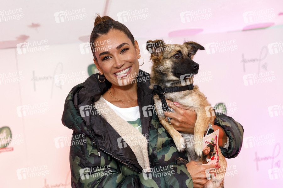 Jana Ina Zarrella mit Hund Cici beim Pressetermin zur Charity-Initinative 'Tierisch engagiert' unterstützt von Fressnapf im Tierheim Köln-Zollstock. Für die Aktion 'Freundschaft verbindet' hat sie ein Freundschaftsarmband designt, dessen Erlöse direkt an den Tierschutz und in tiertherapeutische Einrichtungen fließt. Köln, 29.09.2020