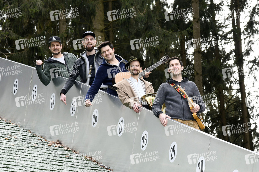 DeSchoWieda beim Fototermin an der Sprungschanze Auerbach. Wartenberg, 19.02.2021