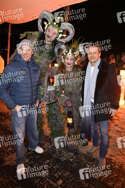Matthias Schloo, Enrico Lein, Claudia Jungesbluth und Roman Knizka beim Opening der Baltic Lights 2025 mit Fackellauf an der Seebrücke Heringsdorf. Heringsdorf, 28.02.2025