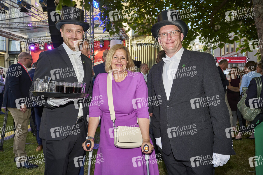 Alexander Hildebrand, Nancy Faeser und Marko Tatomirovic beim Sommerfest der Niedersächsischen Landesregierung 2024 in der Vertretung des Landes Niedersachsen beim Bund. Berlin, 24.06.2024