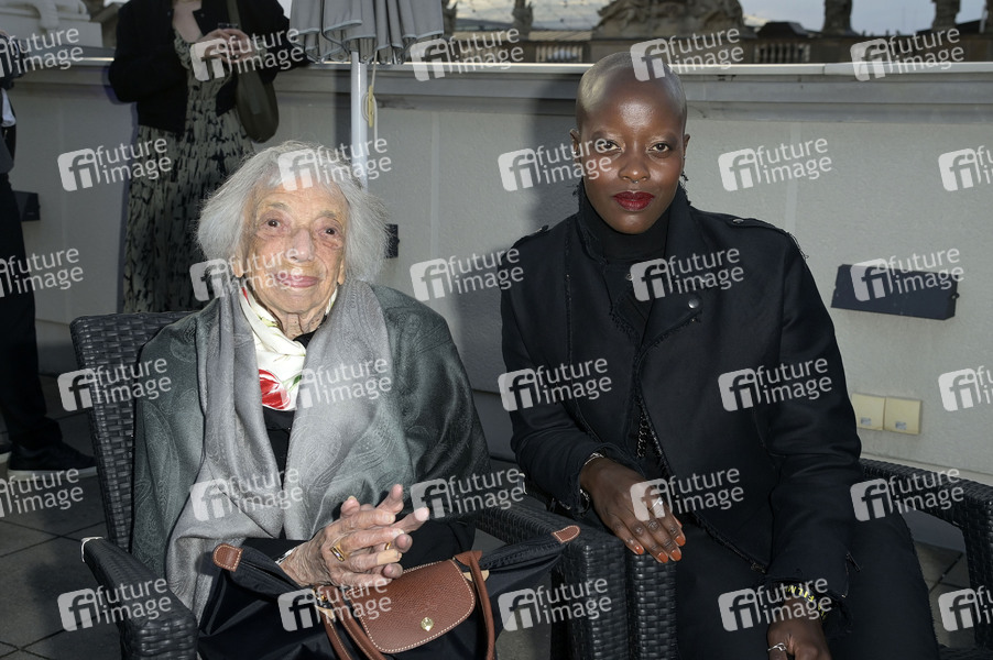 Margot Friedländer und Florence Kasumba beim Eröffnungsempfang der UFA Filmnächte 2024 auf der Dachterrasse der Bertelsmann Repräsentanz. Berlin, 21.08.2024