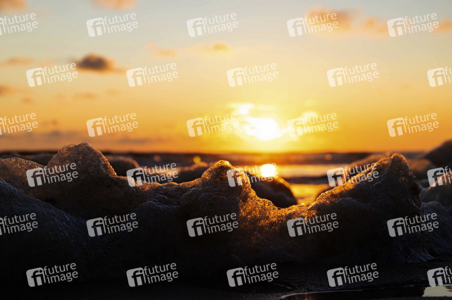 Nordsee, Sylt, nordfriesische Insel, Küste, Strand, Wellen, Reise, Urlaub, Tourismuns, Schaum, Algenschaum, Brandung, Sonnnenuntergang, Symbolbild, Themembild