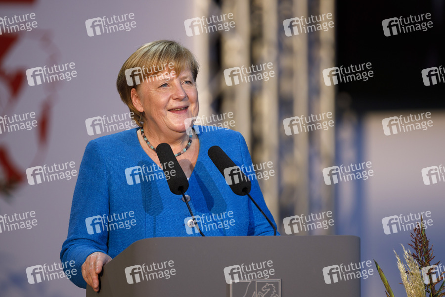 Angela Merkel beim Festakt zum 75. Geburtstag des Landes Nordrhein-Westfalen auf der Düsseldorfer Galopprennbahn. Düsseldorf, 23.08.2021